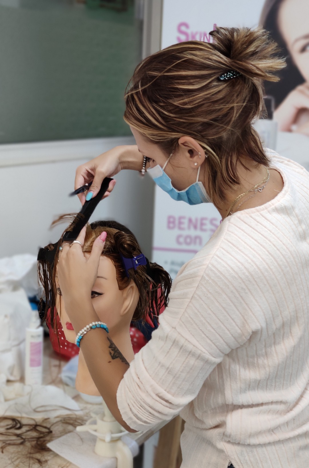 E perché la formazione deve trasformarsi in competenza reale, alla teoria affianchiamo applicazioni dimostrative pratiche, con lavorazioni su modelle e/o testine, per vedere, provare e portare subito in salone ciò che hai imparato.