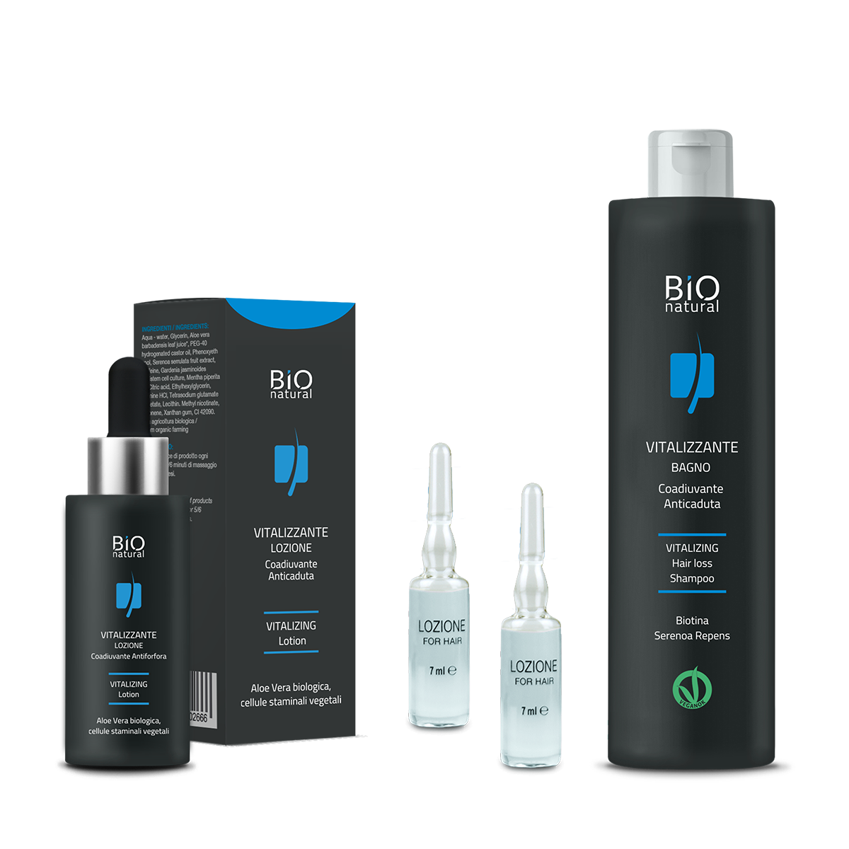 Bio Natural VITALIZZANTE è la linea professionale antietà capillare pensata per riattivare la vitalità del cuoio capelluto e contrastare i segni dell’invecchiamento dei capelli come assottigliamento, opacità, perdita di tono e densità. Le formulazioni, ricche di attivi vitalizzanti, stimolanti e rigeneranti, sostengono il fisiologico ricambio del capello e aiutano a rinforzare la fibra dalla radice alle punte, migliorandone resistenza ed elasticità.